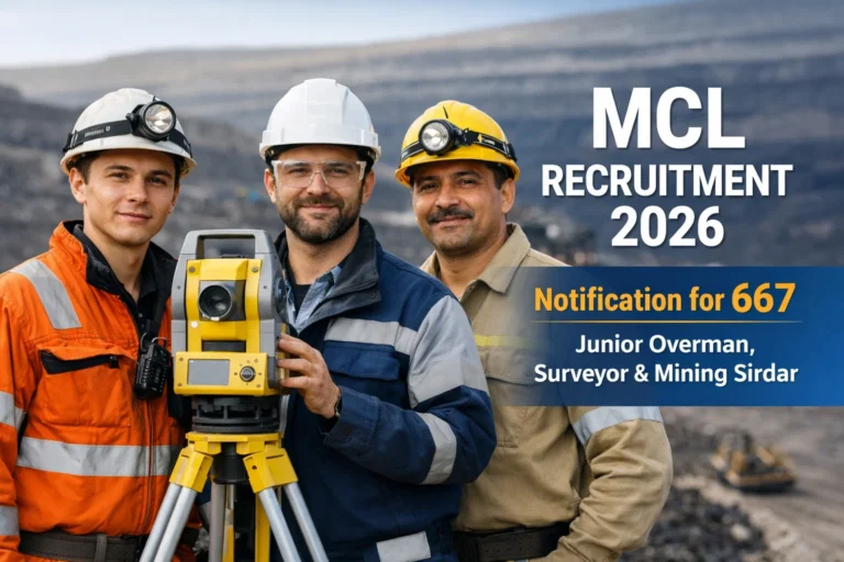 MCL Recruitment 2026: 667 पदों पर बंपर भर्ती, Junior Overman, Mining Sirdar और Surveyor के लिए सुनहरा मौकाVacancy By Rohit Saini / February 23, 2026