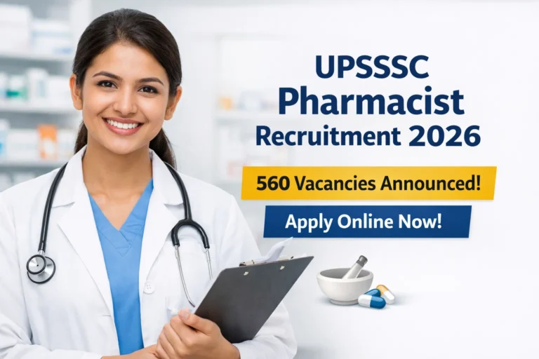 UPSSSC Pharmacist Recruitment 2026: 560 पदों पर भर्ती का नोटिफिकेशन जारी, 9 मार्च से शुरू होंगे Online आवेदनVacancy By Rohit Saini / March 1, 2026