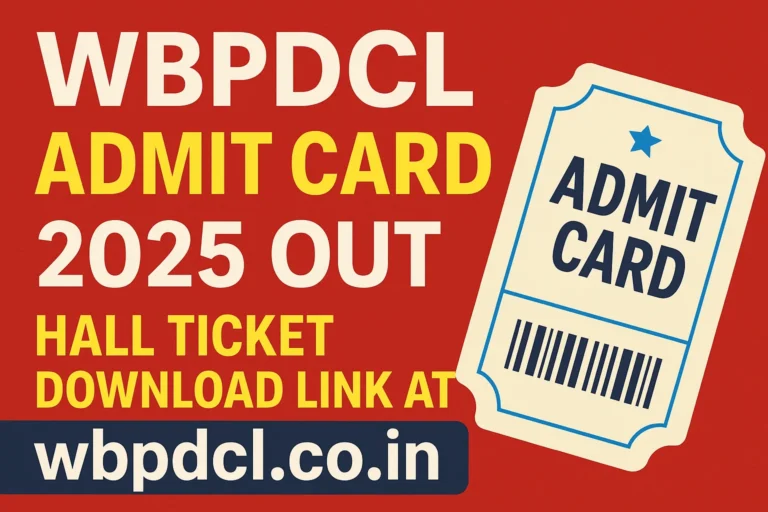 WBPDCL Admit Card 2025 जारी: अब डाउनलोड करें हॉल टिकट, जानें परीक्षा तिथि, पैटर्न और जरूरी निर्देशAdmit Card By Rohit Saini / October 31, 2025