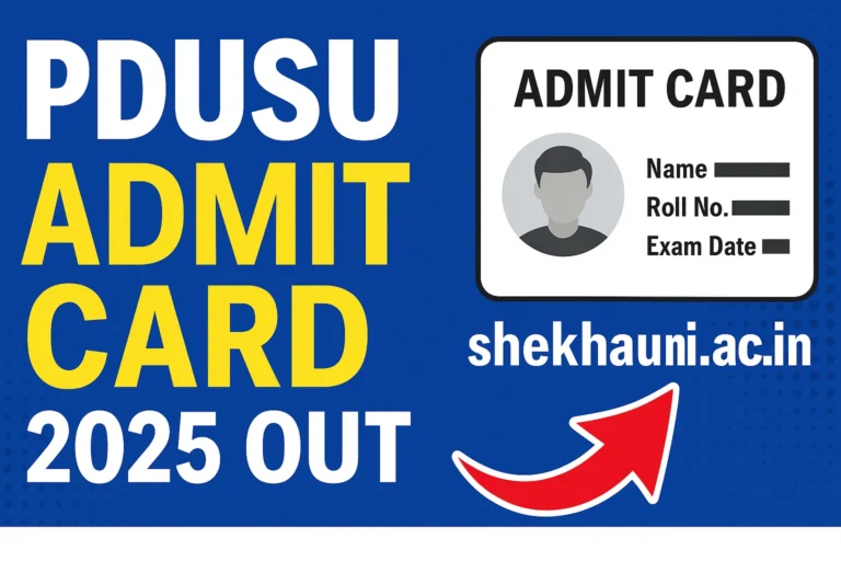 PDUSU Admit Card 2025 जारी: शेखावाटी यूनिवर्सिटी ने जारी किए BA, BSc, BCom सप्लीमेंट्री परीक्षा के प्रवेश पत्र, ऐसे करें डाउनलोडAdmit Card By Rohit Saini / November 2, 2025