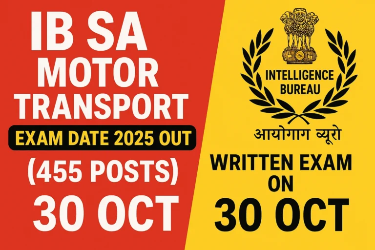 IB SA Motor Transport Exam Date 2025: 455 पदों के लिए परीक्षा 30 अक्टूबर को, MHA ने जारी किया ऑफिशियल शेड्यूलExam By Rohit Saini / October 16, 2025