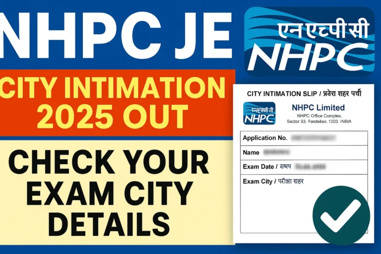 NHPC JE City Intimation 2025 जारी – जानें अपने परीक्षा शहर और सेंटर की पूरी जानकारीExam By Rohit Saini / October 16, 2025
