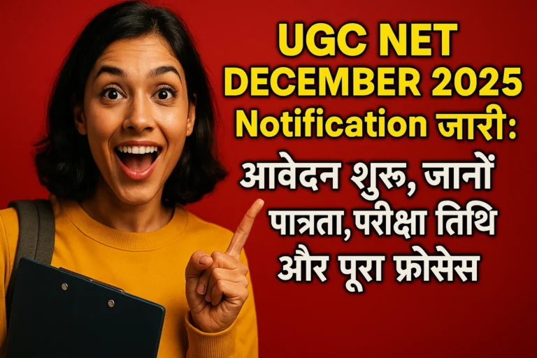UGC NET December 2025 Notification जारी: आवेदन शुरू, जानें पात्रता, परीक्षा तिथि और पूरा प्रोसेसExam By Rohit Saini / October 8, 2025