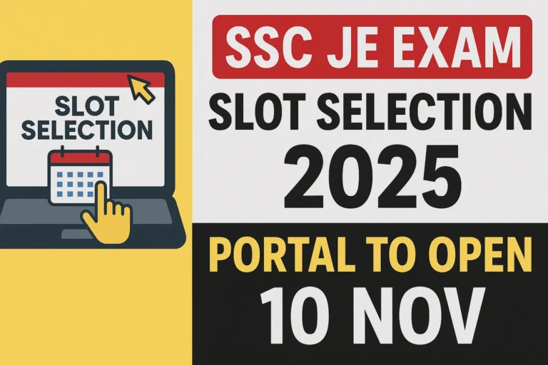 SSC JE Exam Slot Selection 2025: 10 नवंबर से खुलेगा पोर्टल, उम्मीदवार ऐसे करें स्लॉट बुकिंग और शहर चयनExam By Rohit Saini / November 8, 2025