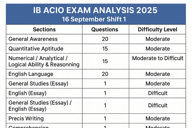 IB ACIO Exam Analysis 2025: 16 September Shift 1 Questions, Difficulty Level और Complete ReviewExam By Rohit Saini / September 16, 2025