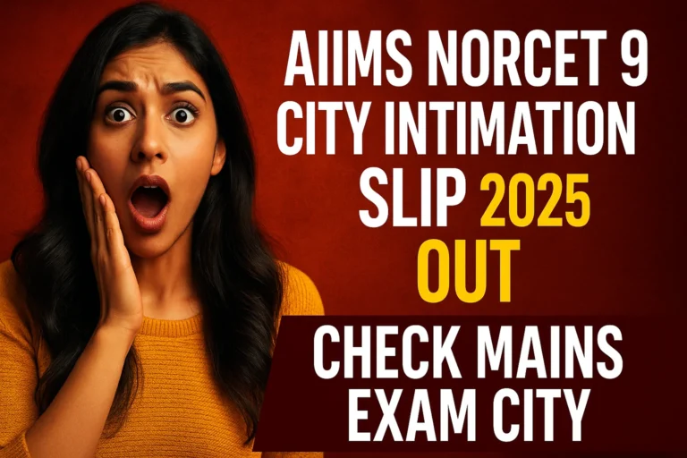 AIIMS NORCET 9 City Intimation Slip 2025 जारी: ऐसे करें डाउनलोड और जानें अपना Exam CityExam By Rohit Saini / September 20, 2025