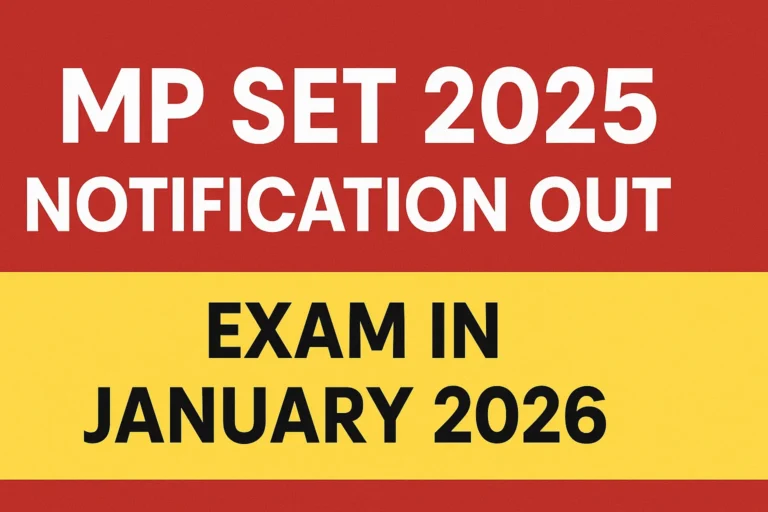 MP SET 2025 Notification: परीक्षा की तैयारी शुरू! जनवरी 2026 में होगी परीक्षा, जानिए पूरी जानकारीExam By Rohit Saini / October 6, 2025