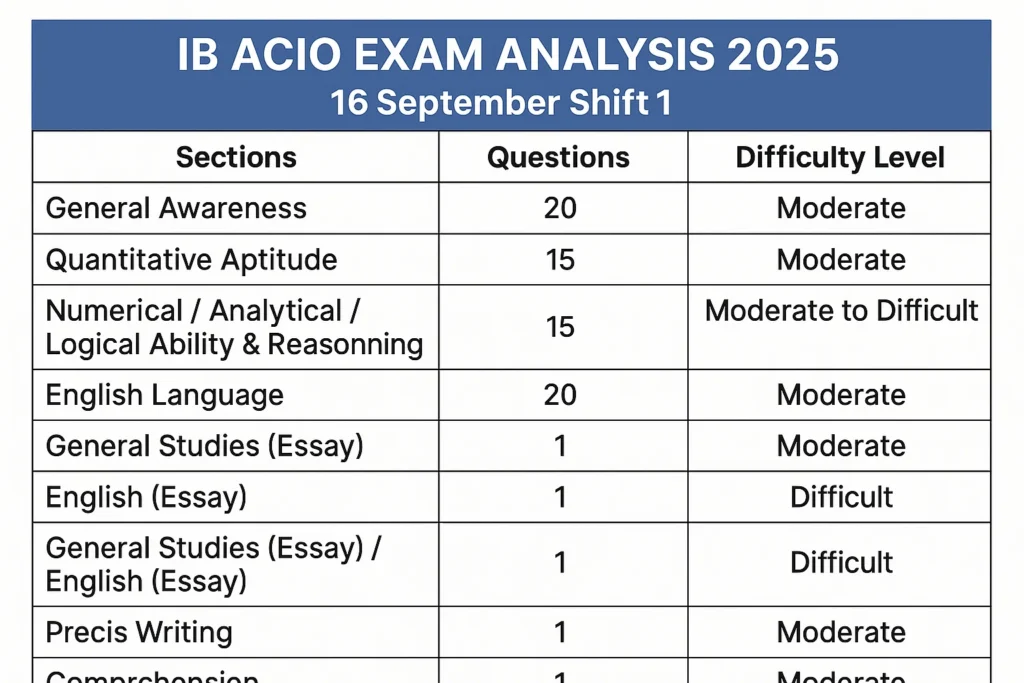 IB ACIO Exam Analysis 2025 (16 सितंबर, Shift 1)