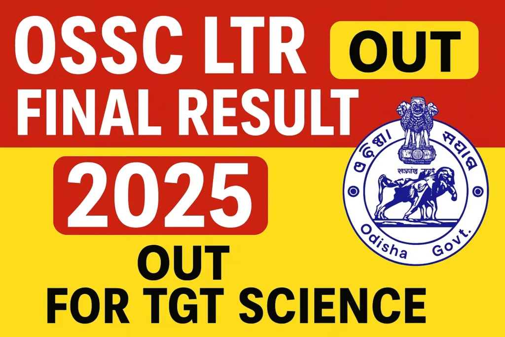 ओडिशा स्टाफ सिलेक्शन कमीशन (OSSC) ने आखिरकार लंबे इंतजार के बाद OSSC LTR Final Result 2025 जारी कर दिया है। यह परिणाम TGT Science (CBZ एवं PCM) के पदों के लिए घोषित किया गया है। जो उम्मीदवार Leave Training Reserve (LTR) Teachers-2024 भर्ती परीक्षा में शामिल हुए थे, वे अब आधिकारिक वेबसाइट www.ossc.gov.in पर जाकर अपना फाइनल रिजल्ट देख सकते हैं। आयोग ने इसके साथ OSSC LTR Final Cut Off 2025 भी जारी की है।