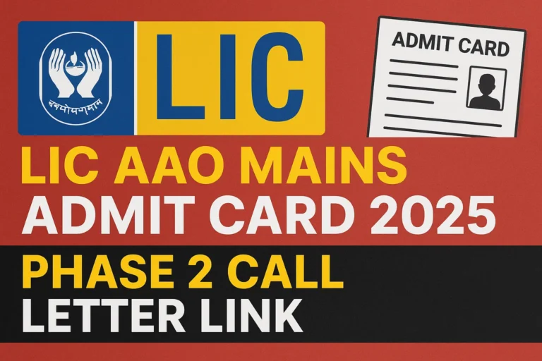 LIC AAO Mains Admit Card 2025 जारी: जानें कब और कैसे करें डाउनलोड, परीक्षा 8 नवंबर कोAdmit Card By Rohit Saini / October 30, 2025