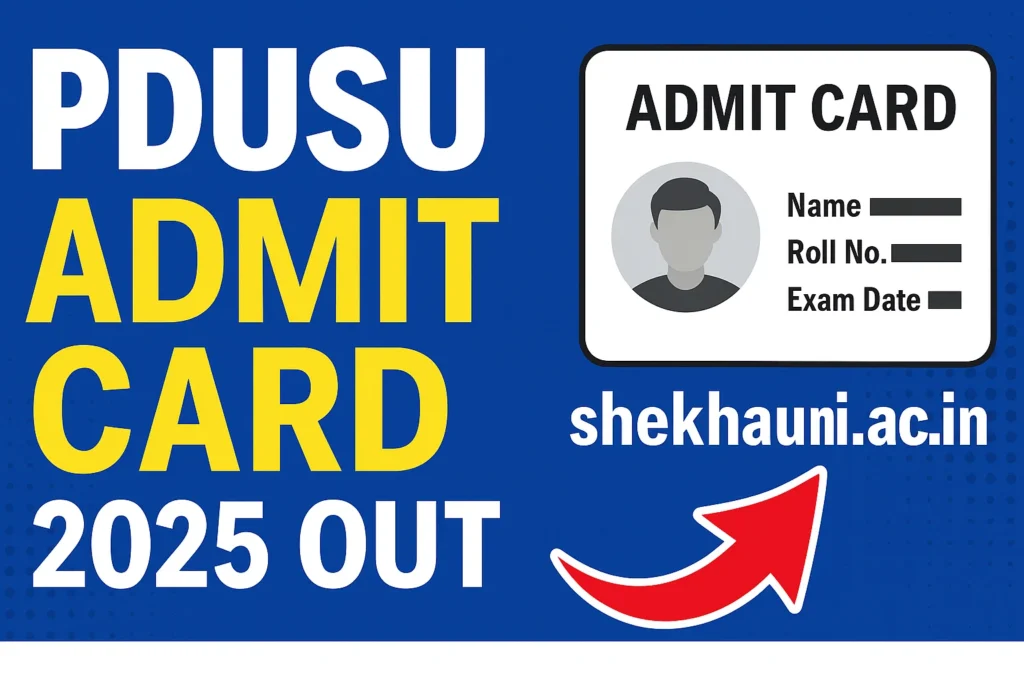 पंडित दीनदयाल उपाध्याय शेखावाटी विश्वविद्यालय (Pandit Deendayal Upadhyaya Shekhawati University – PDUSU), सीकर ने अपने विभिन्न स्नातक पाठ्यक्रमों (UG Courses) की सप्लीमेंट्री परीक्षा 2025 के लिए एडमिट कार्ड (PDUSU Admit Card 2025) जारी कर दिए हैं। छात्र अब विश्वविद्यालय की आधिकारिक वेबसाइट shekhauniexam.in से अपना एडमिट कार्ड डाउनलोड कर सकते हैं।