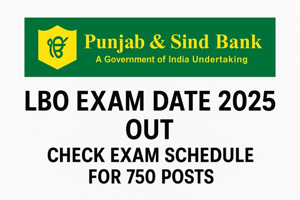 अधिकारिक नोटिस के अनुसार, Punjab and Sind Bank LBO Exam 2025 का आयोजन 5 अक्टूबर 2025 को किया जाएगा। इस परीक्षा में शामिल होने वाले उम्मीदवारों को अब अपनी तैयारी को अंतिम चरण में ले जाने की जरूरत है। इस लेख में हम आपको Punjab and Sind Bank LBO Recruitment 2025 से जुड़ी हर जानकारी देंगे—चाहे वह eligibility, exam pattern, syllabus, salary details हों या vacancy distribution और selection process।