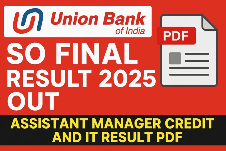 Union Bank of India SO Final Result 2025 घोषित, Assistant Manager (Credit & IT) Result PDF Download करेंResult By Rohit Saini / September 26, 2025
