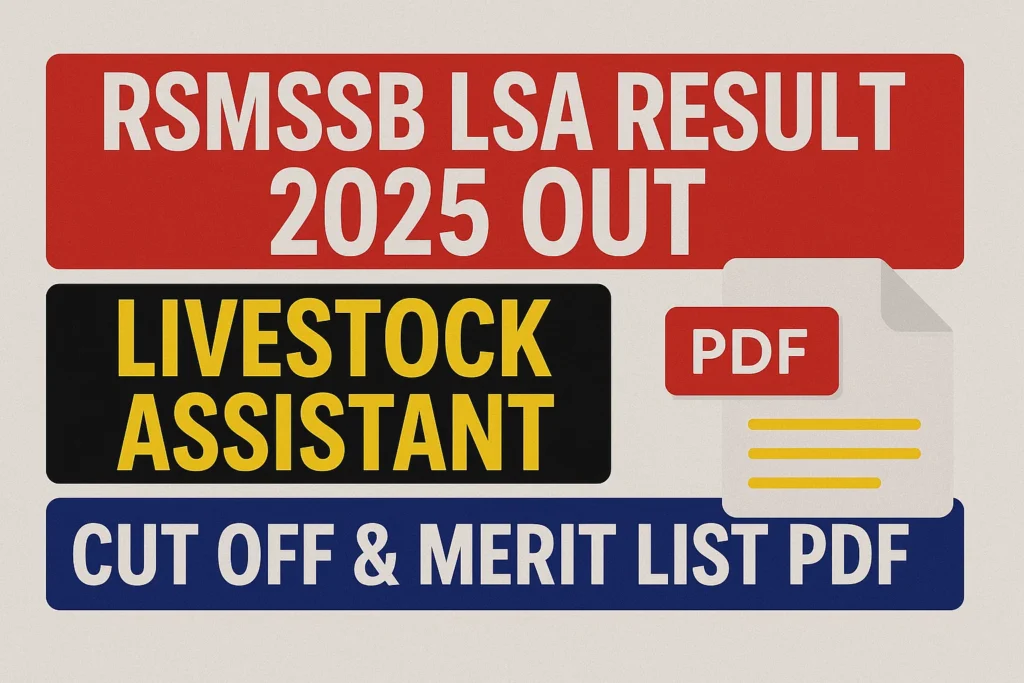राजस्थान कर्मचारी चयन बोर्ड (Rajasthan Staff Selection Board – RSSB) ने आखिरकार RSMSSB LSA Result 2025 घोषित कर दिया है। यह परिणाम 17 अक्टूबर 2025 को बोर्ड की आधिकारिक वेबसाइट https://rssb.rajasthan.gov.in/ पर जारी किया गया। लंबे समय से इंतज़ार कर रहे उम्मीदवार अब अपने पशुधन सहायक (Livestock Assistant) परीक्षा के परिणाम और कट ऑफ मार्क्स (Cut Off Marks) चेक कर सकते हैं।