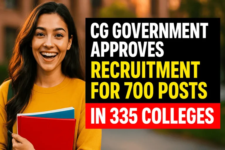 छत्तीसगढ़ सरकार ने कॉलेजों में 700 पदों पर भर्ती को दी मंजूरी, जानें पूरी डिटेल्स, लाभ और अगला कदमVacancy By Rohit Saini / September 18, 2025