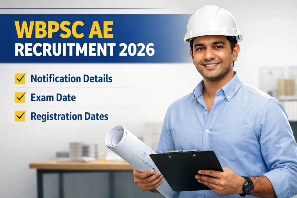 WBPSC की यह भर्ती हर साल हजारों इंजीनियरिंग ग्रेजुएट्स के लिए एक सुनहरा अवसर होती है। इस लेख में हम आपको WBPSC AE भर्ती 2026 से जुड़ी हर जरूरी जानकारी विस्तार से बताएंगे, जैसे— नोटिफिकेशन अपडेट, आवेदन तिथि, पात्रता मानदंड, चयन प्रक्रिया, परीक्षा पैटर्न, सिलेबस, सैलरी स्ट्रक्चर और ऑनलाइन आवेदन का पूरा प्रोसेस।